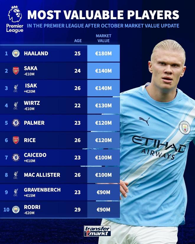 罗德里、福登均跌2000万欧,曼城队内仅剩哈兰德一位亿元先生